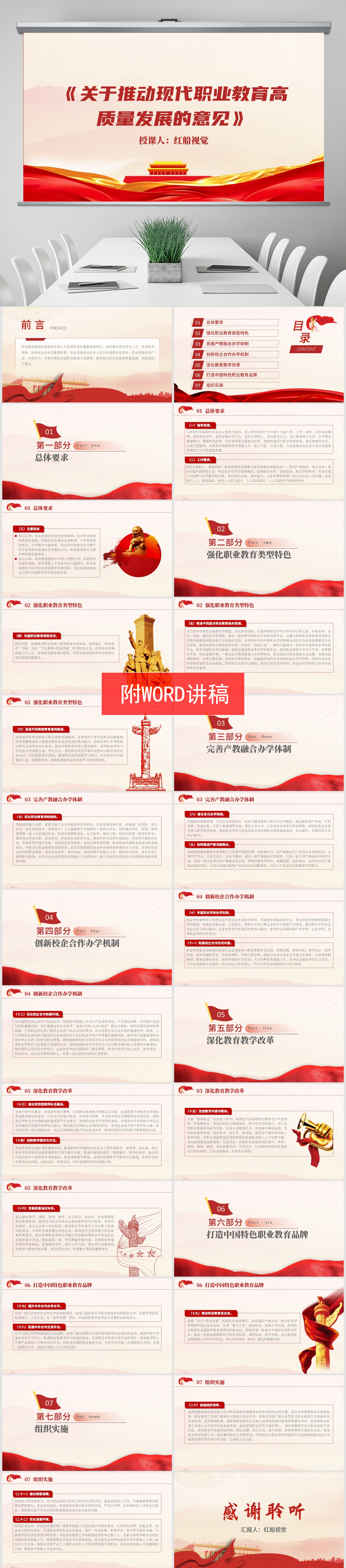 本课件主要内容为 关于推动现代职业教育高质量发展的意见,适用于体制内大部分党课,本课件的word讲稿内容约5000字